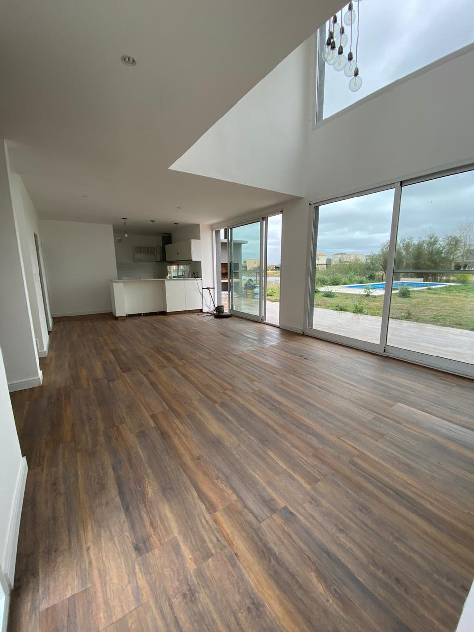 Planta baja: cocina abierta, lavadero separado, living comedor, Toilette, 2 habitaciones con dos baños, habitación de servicio en suite, estacionamiento descubierto, galería, parrilla y pileta.