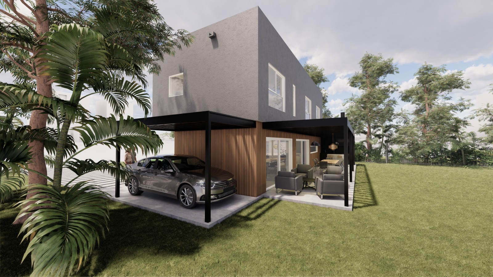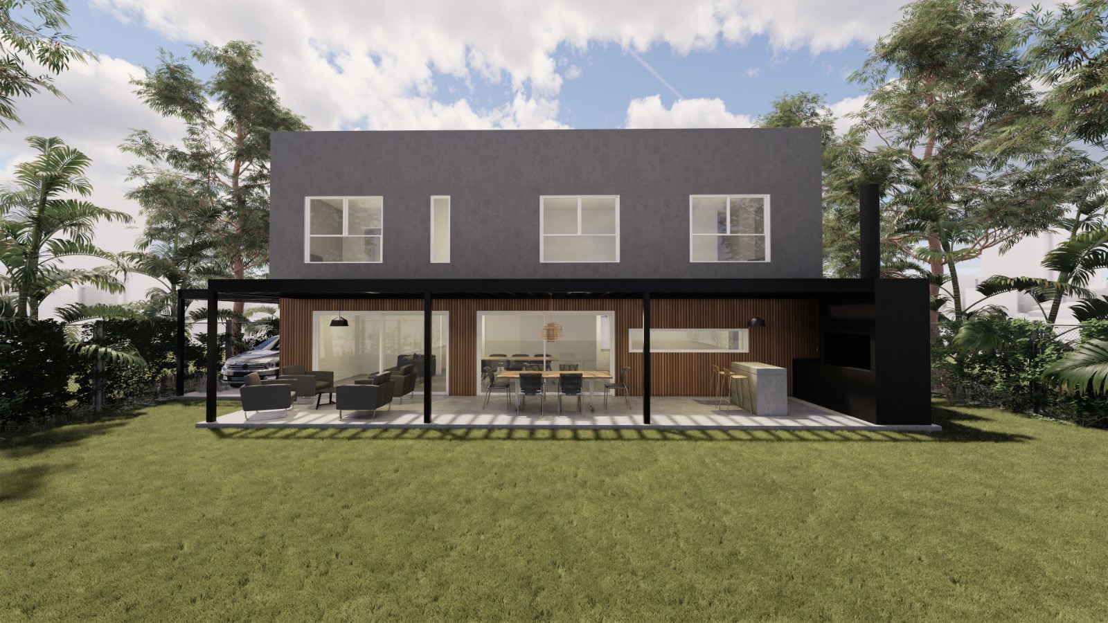 • Planta baja: cocina abierta, Lavadero independiente, living comedor, 1 habitación, 1 baño, Estacionamiento descubierto, amplia galería semi-cubierta, parrilla y pileta.