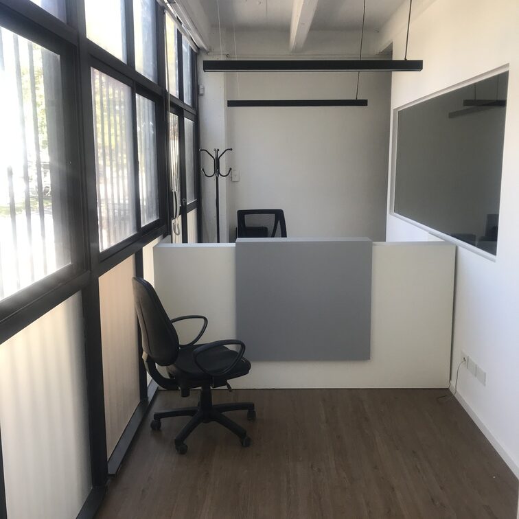 2do piso: Sala de reuniones, 2 despachos independientes y zona de escritorios del personal. Se retiraron divisiones originales y ejecutamos, con tabiquería, nuevas divisiones de durlock y vidrio según el nuevo proyecto. Renovación de pisos, sistema de climatización, cielorrasos, iluminación, pintura y diseño de mobiliario.